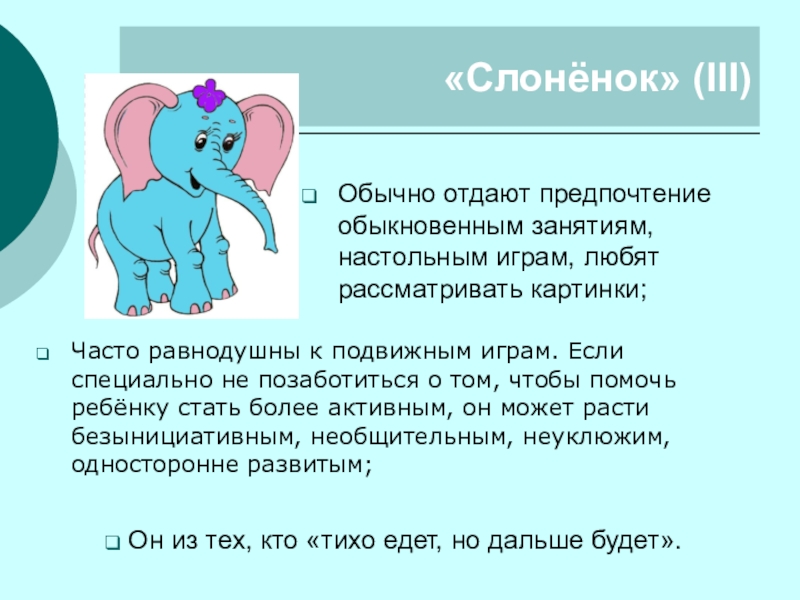 Обычно отдают предпочтение обыкновенным занятиям, настольным играм, любят рассматривать картинки;