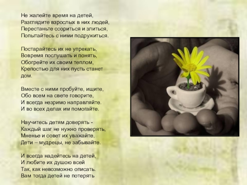 Слайд 23Не жалейте время на детей,