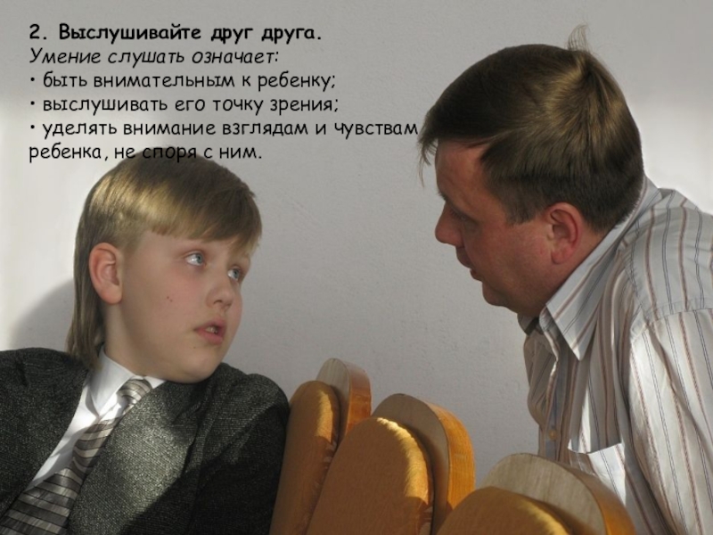 2. Выслушивайте друг друга.Умение слушать означает:     • быть внимательным к ребенку;