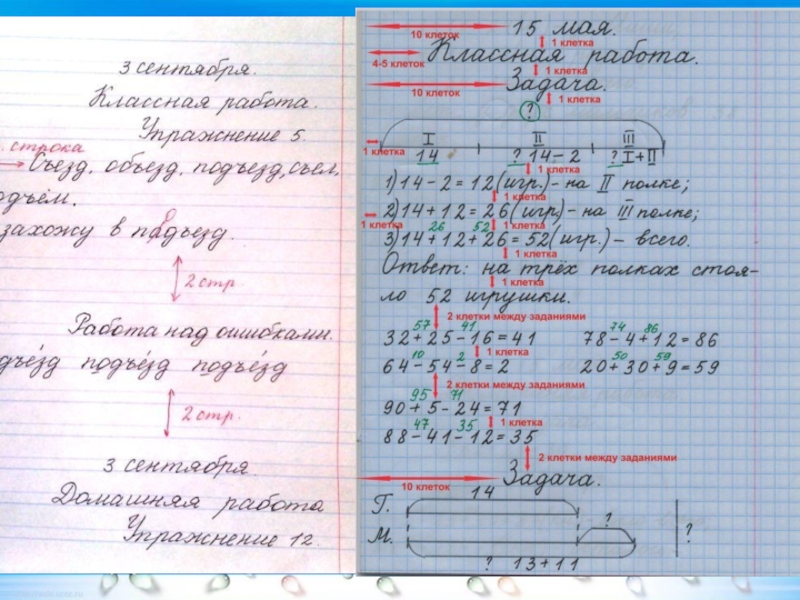 других операций в тетрадях учащиеся используют простой карандаш и ручку с зелёными чернилами.