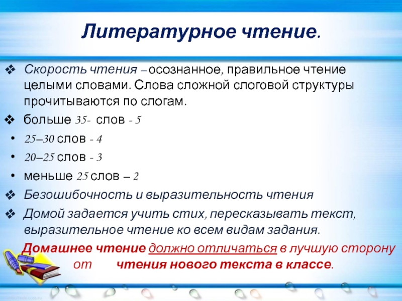 Скорость чтения – осознанное, правильное чтение целыми словами. Слова сложной
