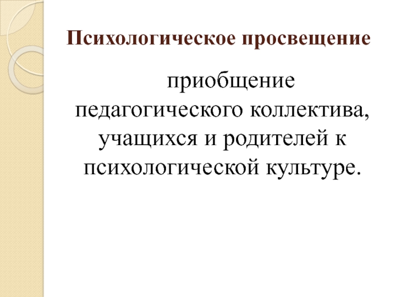 Психологическое просвещение    приобщение педагогического коллектива, учащихся и родителей к психологической культуре.