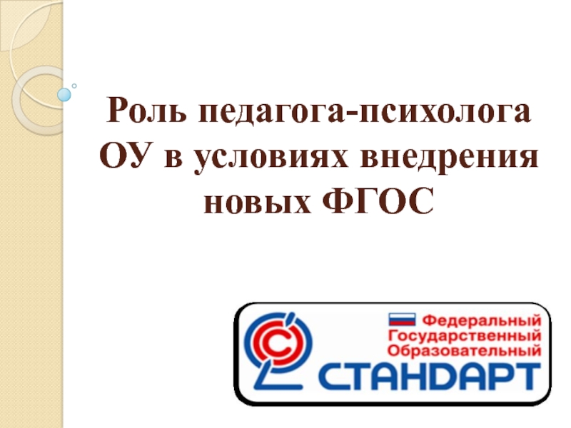 Слайд 1Роль педагога-психолога ОУ в условиях внедрения новых ФГОС