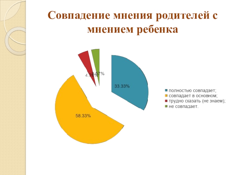 Слайд 8Совпадение мнения родителей с мнением ребенка