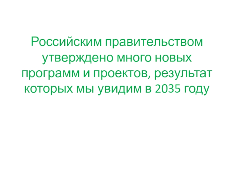 Слайд 22Российским правительством утверждено много новых программ и проектов, результат которых мы