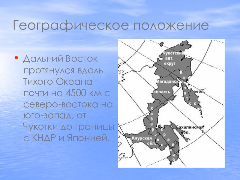 Дальний Восток протянулся вдоль Тихого Океана почти на 4500 км
