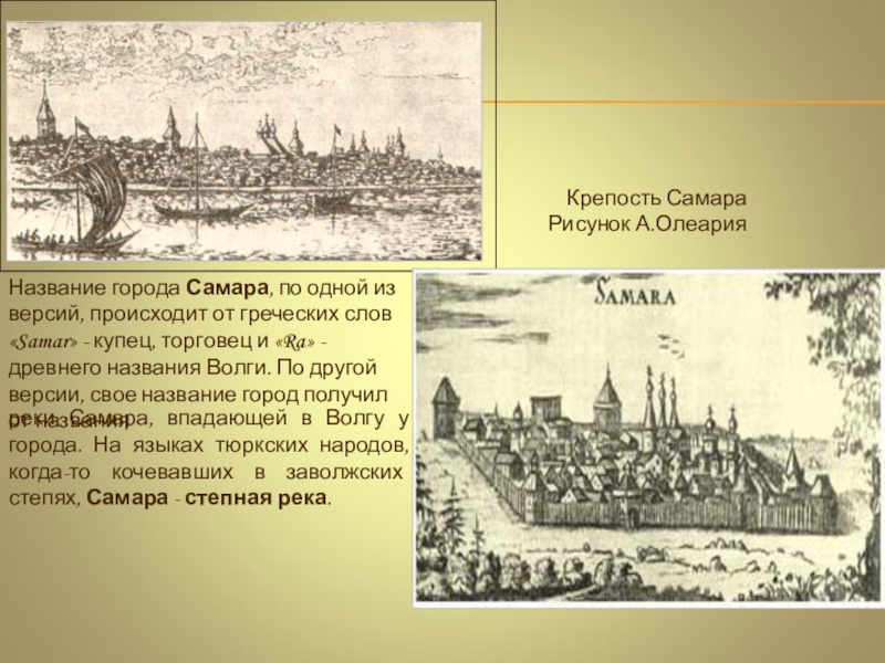В XVI веке по указу царя Федора и воеводы Григория Засекина, была возведена крепость для защиты юго-восточных рубежей., и имя ей было дано Самара.