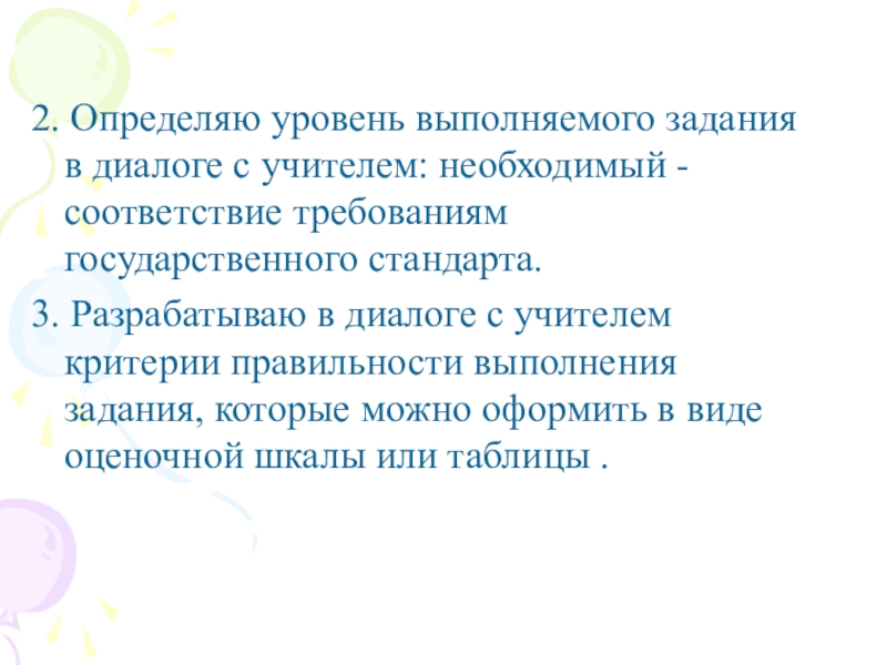 2. Определяю уровень выполняемого задания в диалоге с учителем: необходимый -