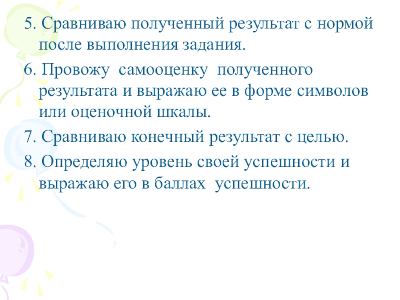 8. Определяю уровень своей успешности и выражаю его в баллах успешности.