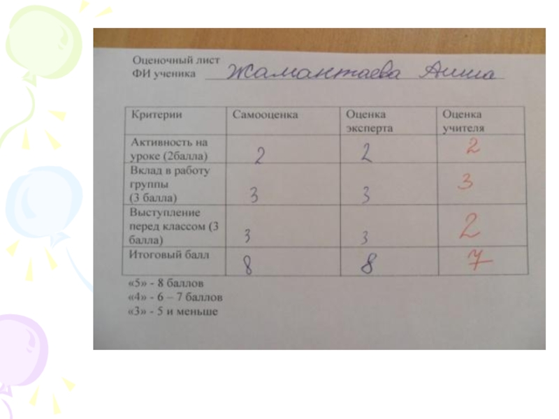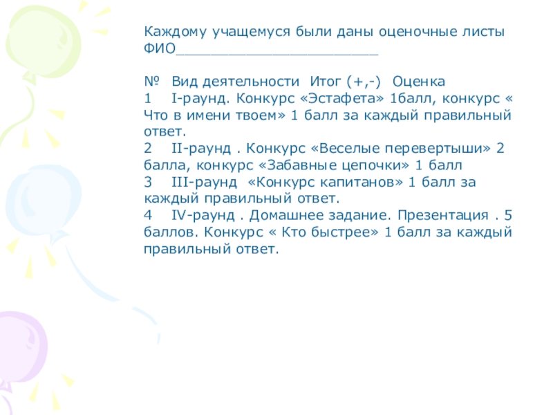 Слайд 12Каждому учащемуся были даны оценочные листы