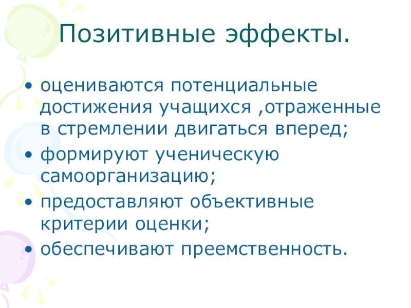 оцениваются потенциальные достижения учащихся ,отраженные в стремлении двигаться вперед;