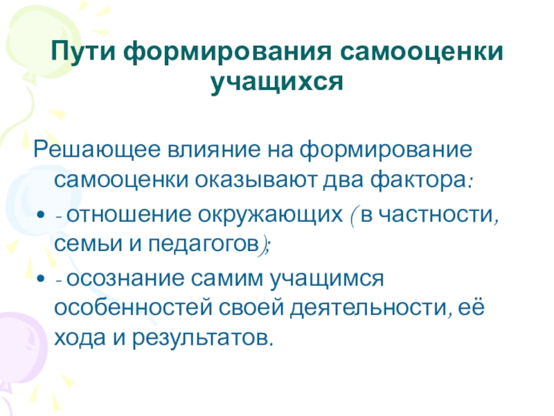 Решающее влияние на формирование самооценки оказывают два фактора: