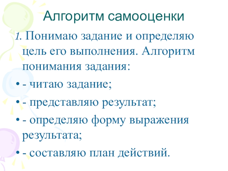 1. Понимаю задание и определяю цель его выполнения. Алгоритм понимания