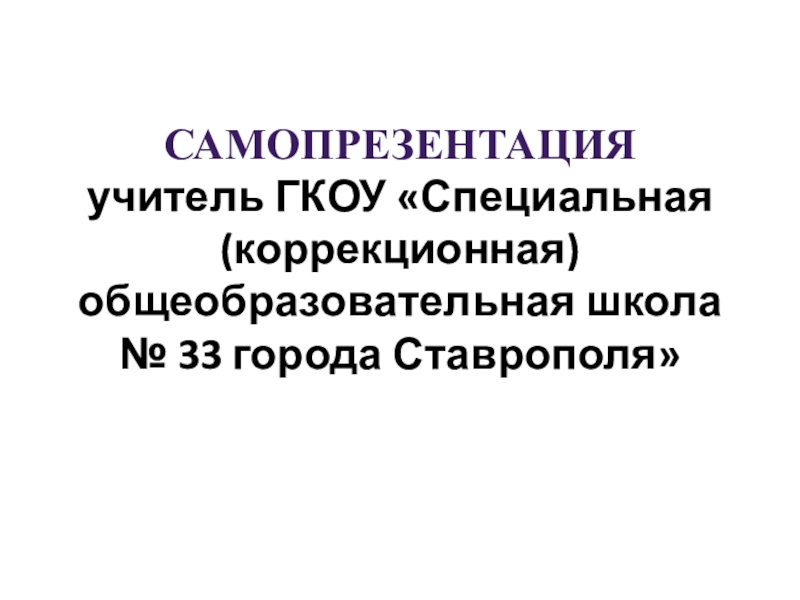 Слайд 1 Самопрезентация учитель ГКОУ «Специальная (коррекционная) общеобразовательная школа № 33 города Ставрополя»