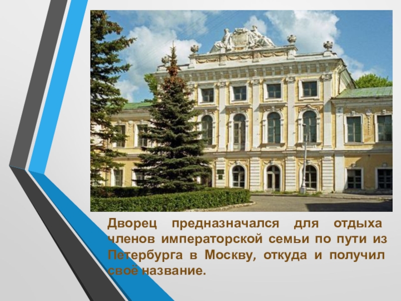 Слайд 7Дворец предназначался для отдыха членов императорской семьи по пути из Петербурга