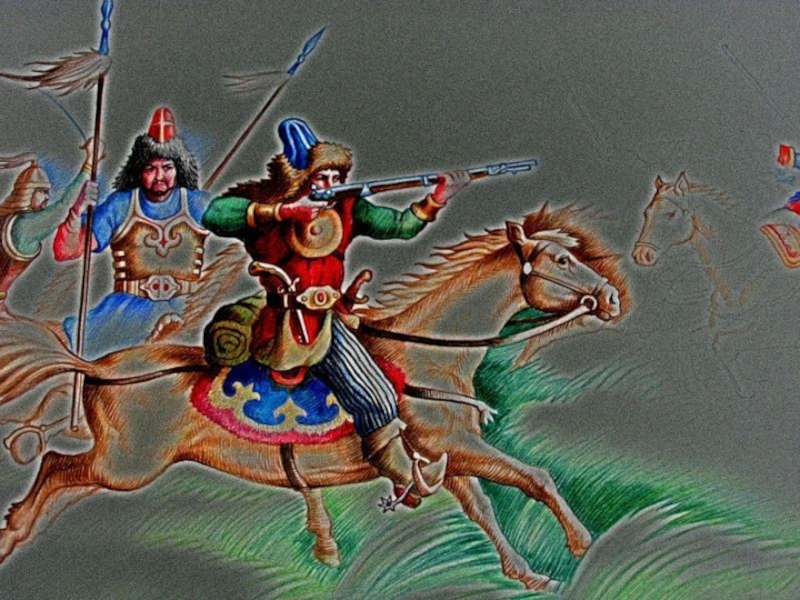 Слайд 8 Мчаться на своих конях, известных своей крепостью и быстротою, башкиры в