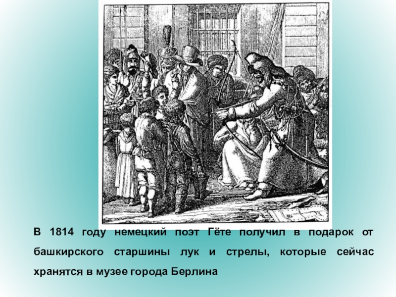 Слайд 19В 1814 году немецкий поэт Гёте получил в подарок от башкирского