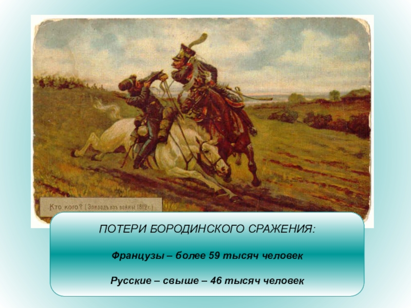 Слайд 14ПОТЕРИ БОРОДИНСКОГО СРАЖЕНИЯ: