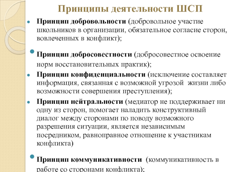 Слайд 43Принципы деятельности ШСП
