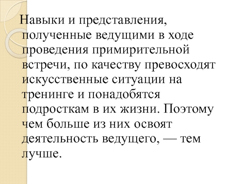 Слайд 41 Навыки и представления, полученные ведущими в ходе проведения примирительной встречи,