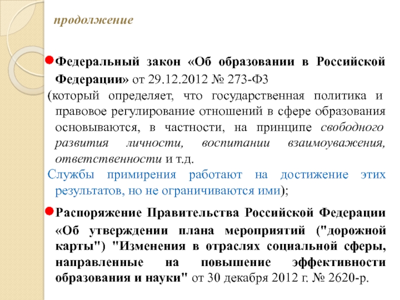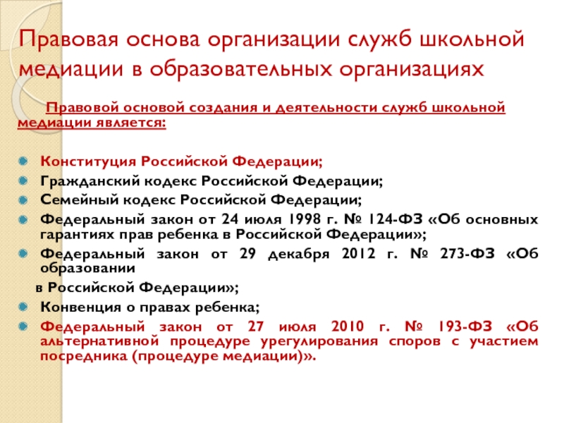 Слайд 3Правовая основа организации служб школьной медиации в образовательных организациях