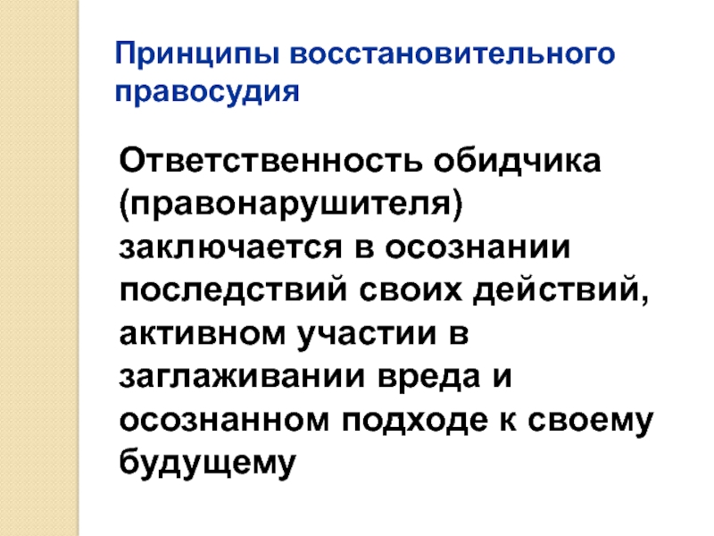 Слайд 26Принципы восстановительного правосудия