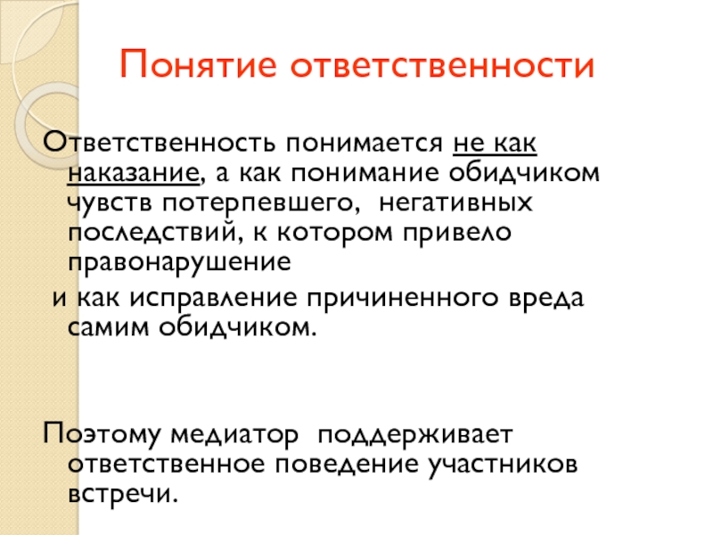 Ответственность понимается не как наказание, а как понимание обидчиком чувств