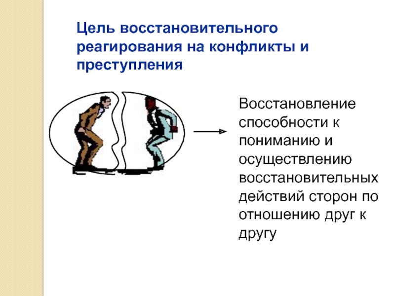 Слайд 31Цель восстановительного реагирования на конфликты и преступления