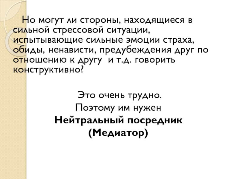 Слайд 33 Но могут ли стороны, находящиеся в сильной стрессовой ситуации,