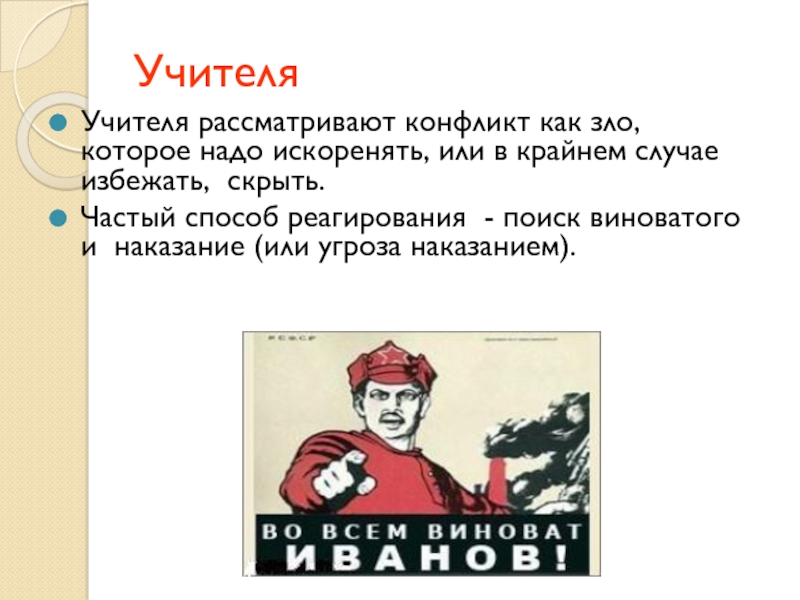 Учителя рассматривают конфликт как зло, которое надо искоренять, или в крайнем