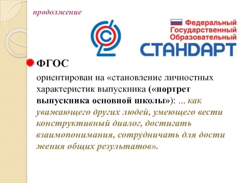 ... как уважающего других людей, умеющего вести конструктивный диалог, достигать взаимопонимания, сотрудничать для достижения общих результатов».