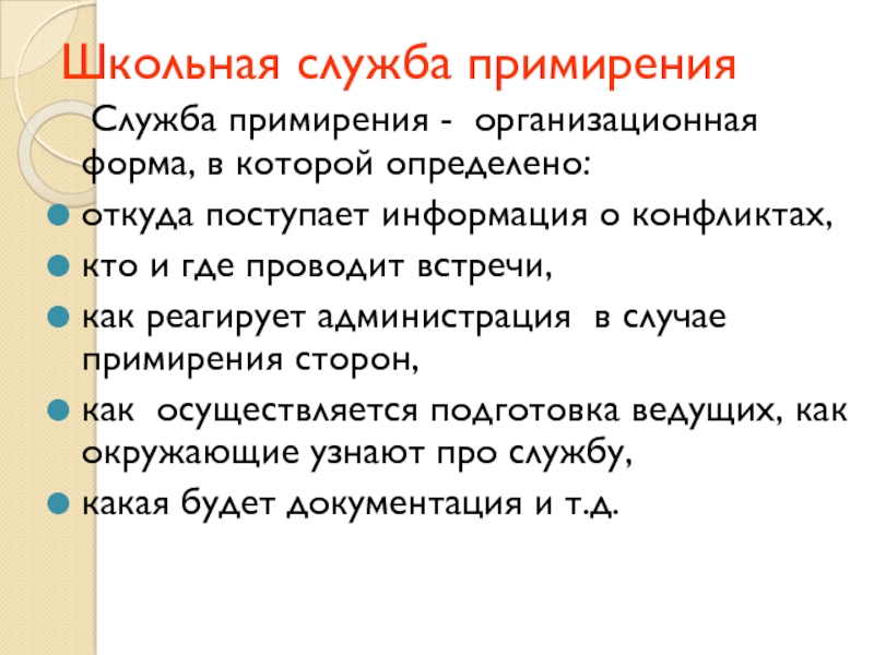 Служба примирения - организационная форма, в которой определено:
