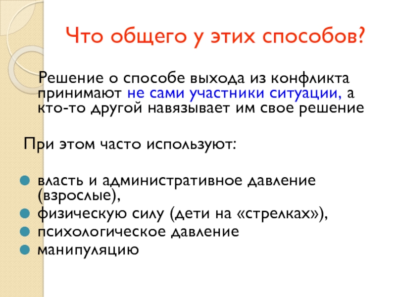 конфликта принимают не сами участники ситуации, а кто-то другой навязывает им свое решение