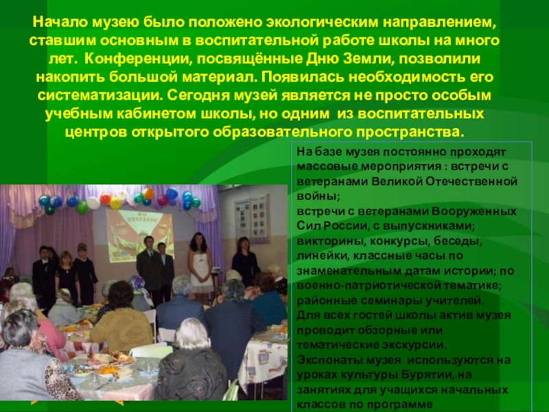 Слайд 10Начало музею было положено экологическим направлением, ставшим основным в воспитательной работе