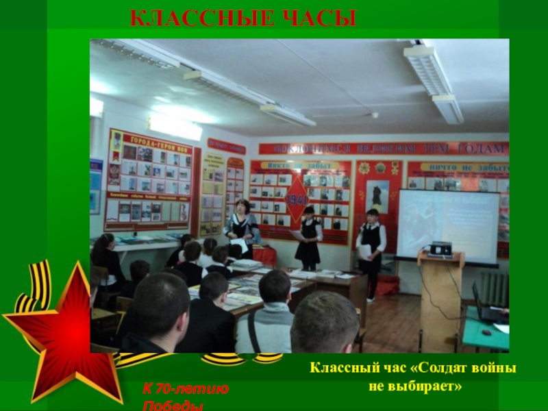 викторины, конкурсы, беседы, линейки, классные часы по знаменательным датам истории; по военно-патриотической тематике; районные семинары учителей.