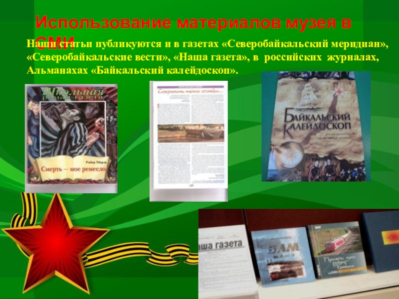 «Северобайкальские вести», «Наша газета», в российских журналах,