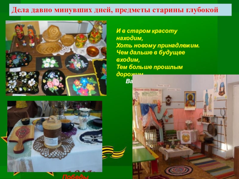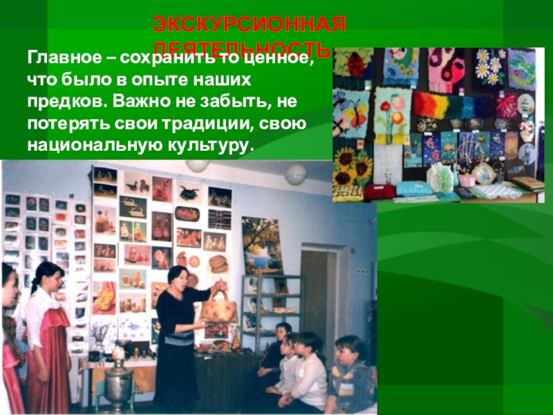 С этим нельзя не согласиться, потому что программа краеведческой работы нашего музея направлена именно на развитие интереса учащихся к истории своего народа, а это значит – на воспитание чувства гордости за свой народ и уважения к нему, чувства ответственности и желания продолжить дело старшего поколения.