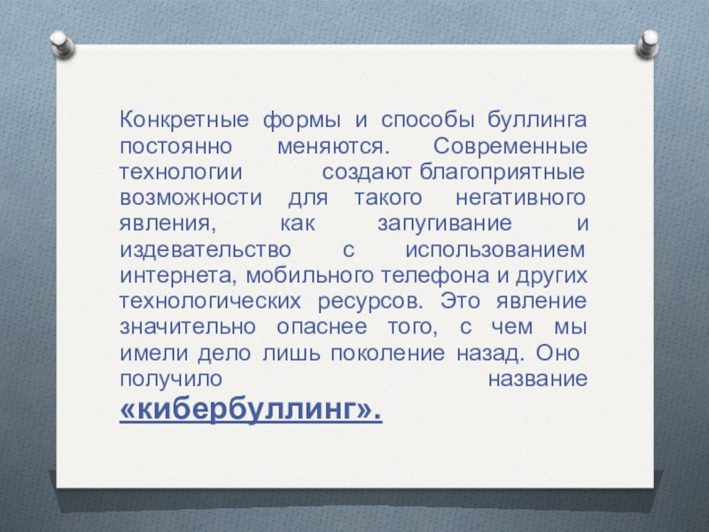 Слайд 10Конкретные формы и способы буллинга постоянно меняются. Современные технологии создают благоприятные возможности