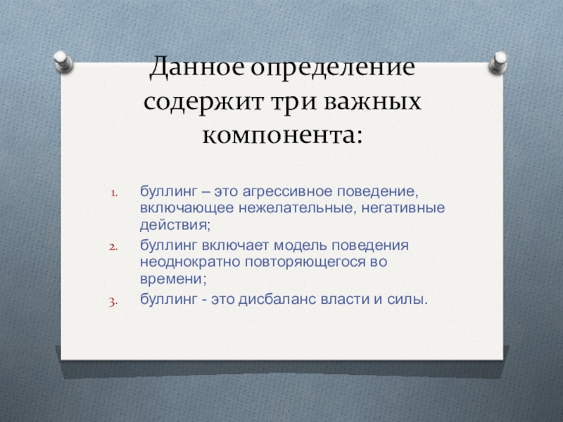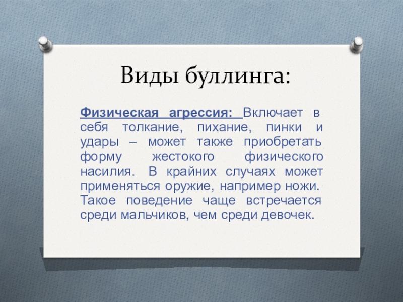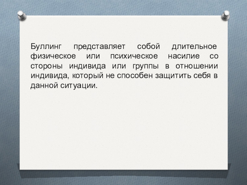 Слайд 2Буллинг представляет собой длительное физическое или психическое насилие со стороны индивида