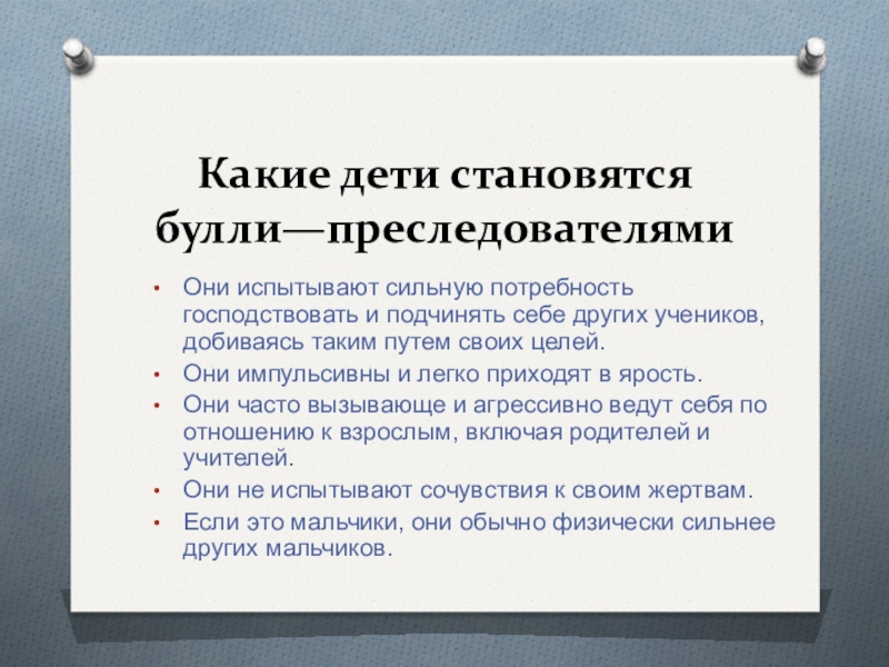 Слайд 12Какие дети становятся булли—преследователями