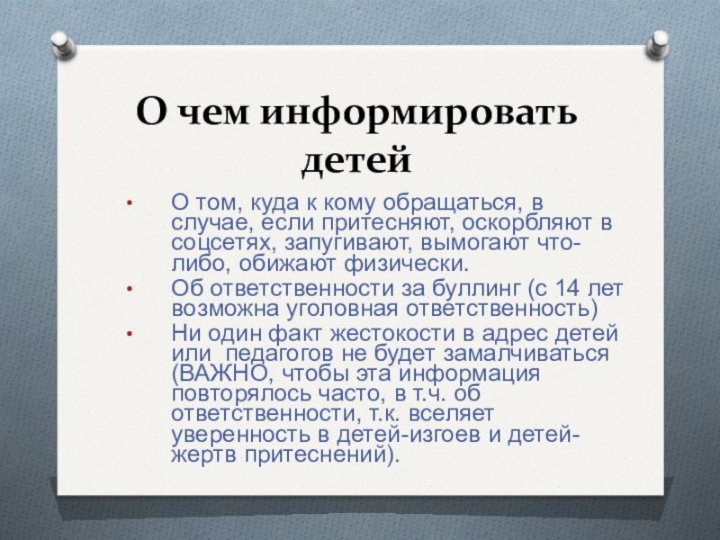 Слайд 19О чем информировать детей