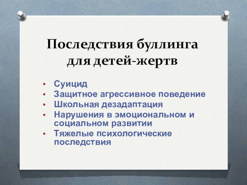 Слайд 15Последствия буллинга для детей-жертв