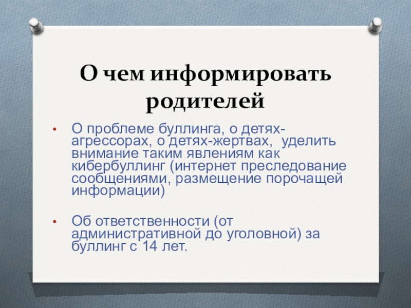 Слайд 18О чем информировать родителей