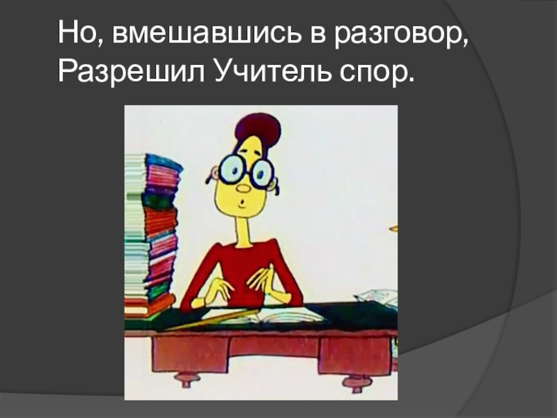 Слайд 6Но, вмешавшись в разговор, Разрешил Учитель спор.