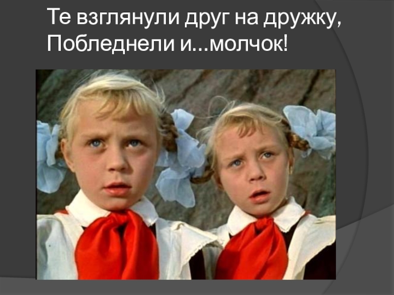 Слайд 8Те взглянули друг на дружку, Побледнели и…молчок!