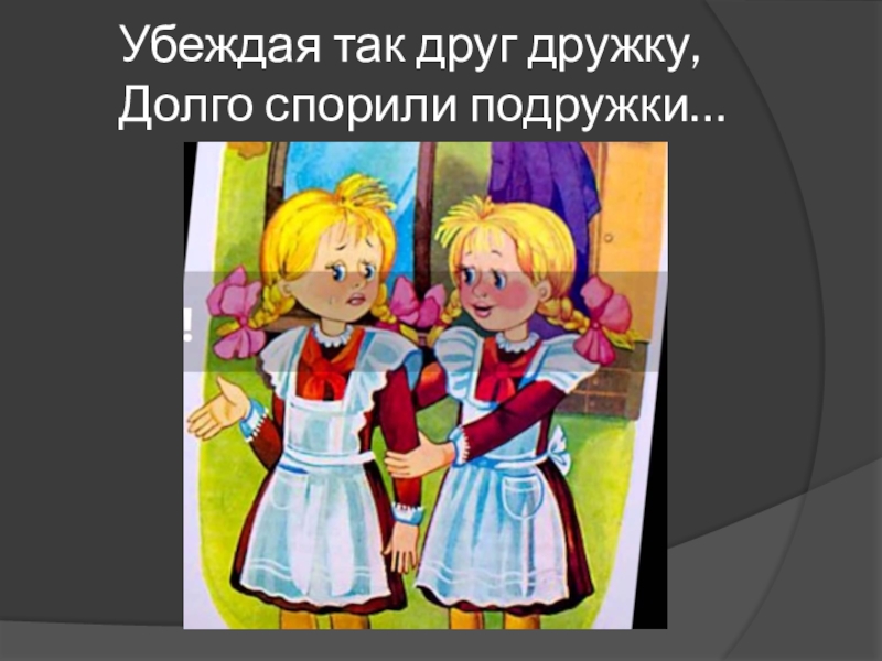 Слайд 5Убеждая так друг дружку, Долго спорили подружки…