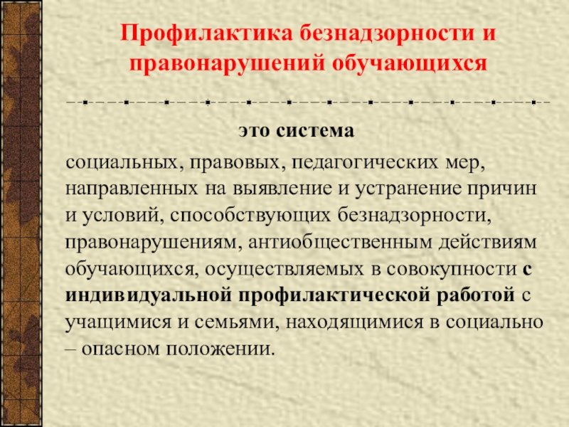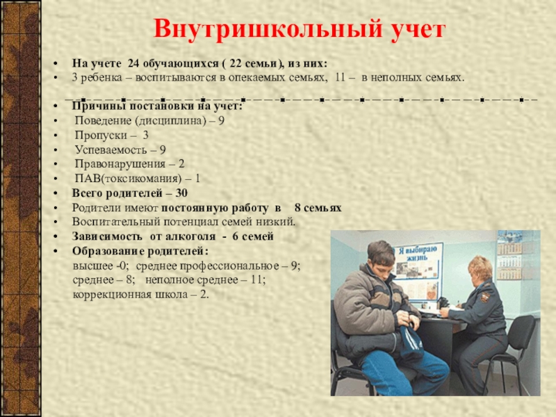 2) Выявление несовершеннолетних, находящихся в социально – опасном положении или систематически пропускающих по неуважительным причинам занятия, принятие мер по их воспитанию и получению ими основного общего образования;