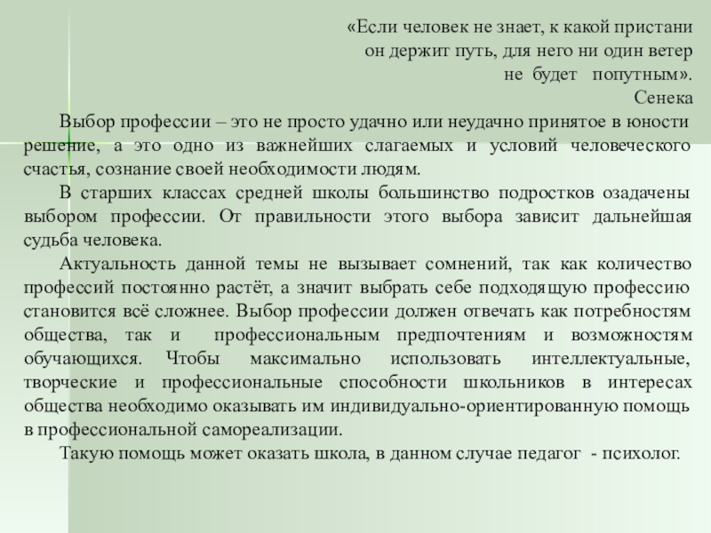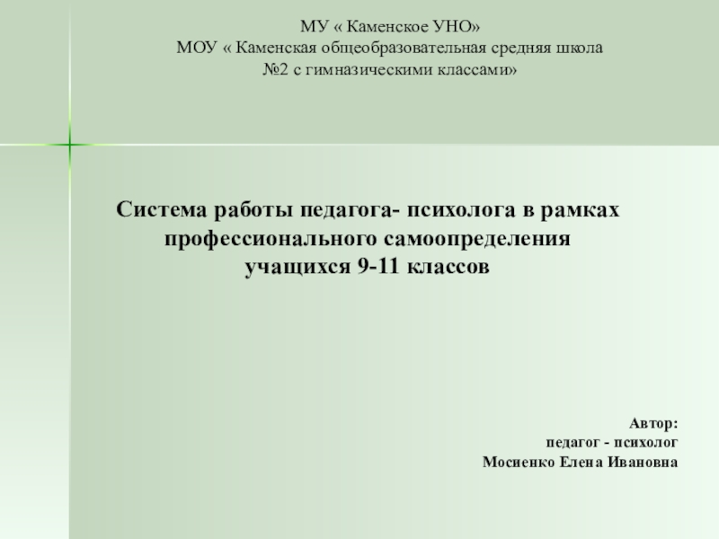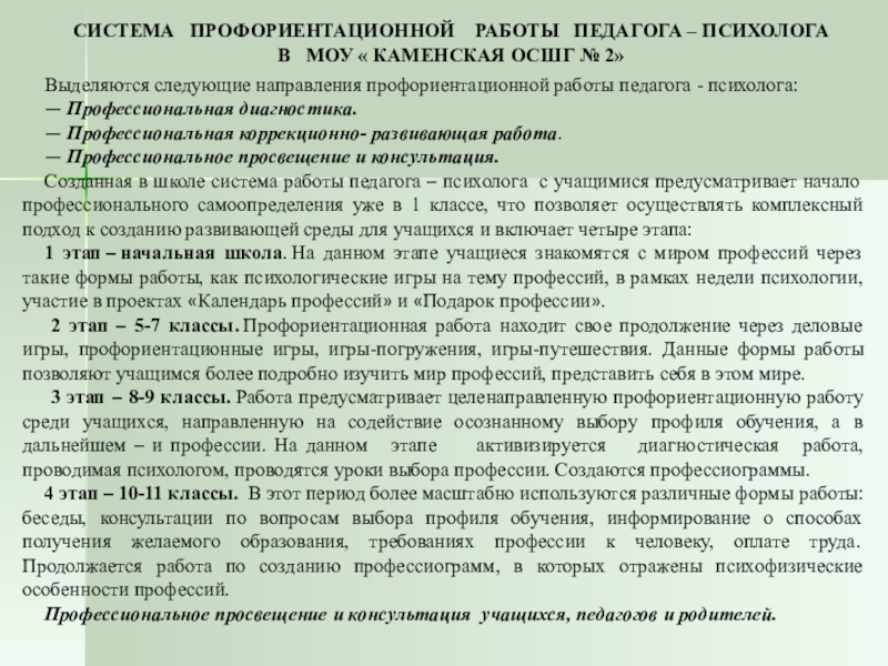 Система работы педагога- психолога в рамках профессионального самоопределения учащихся 9-11 классов