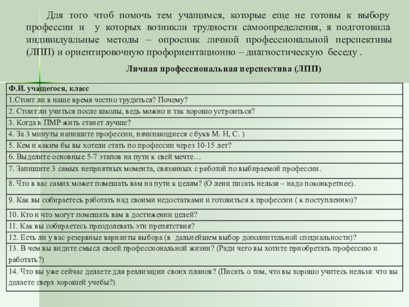 Личная профессиональная перспектива (ЛПП)