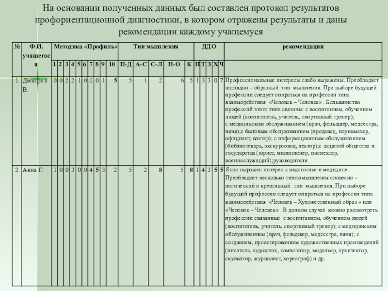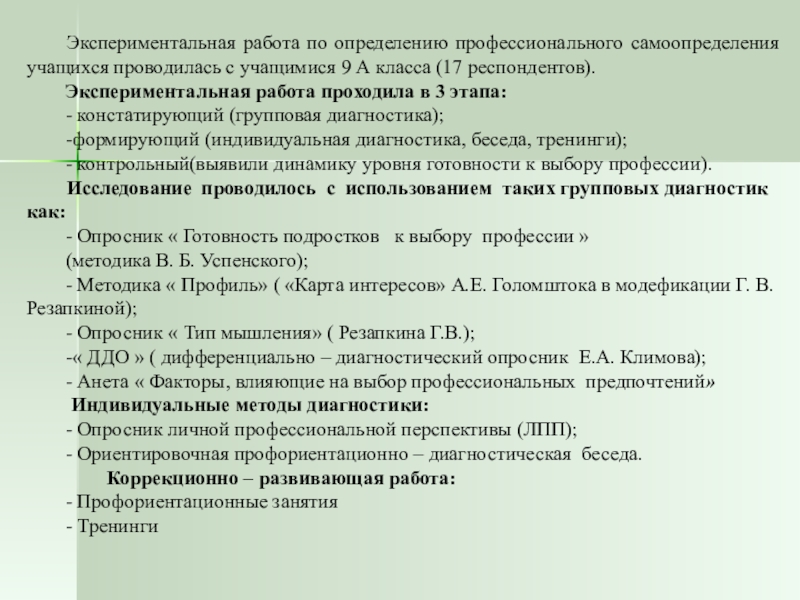 — Профессиональная диагностика.